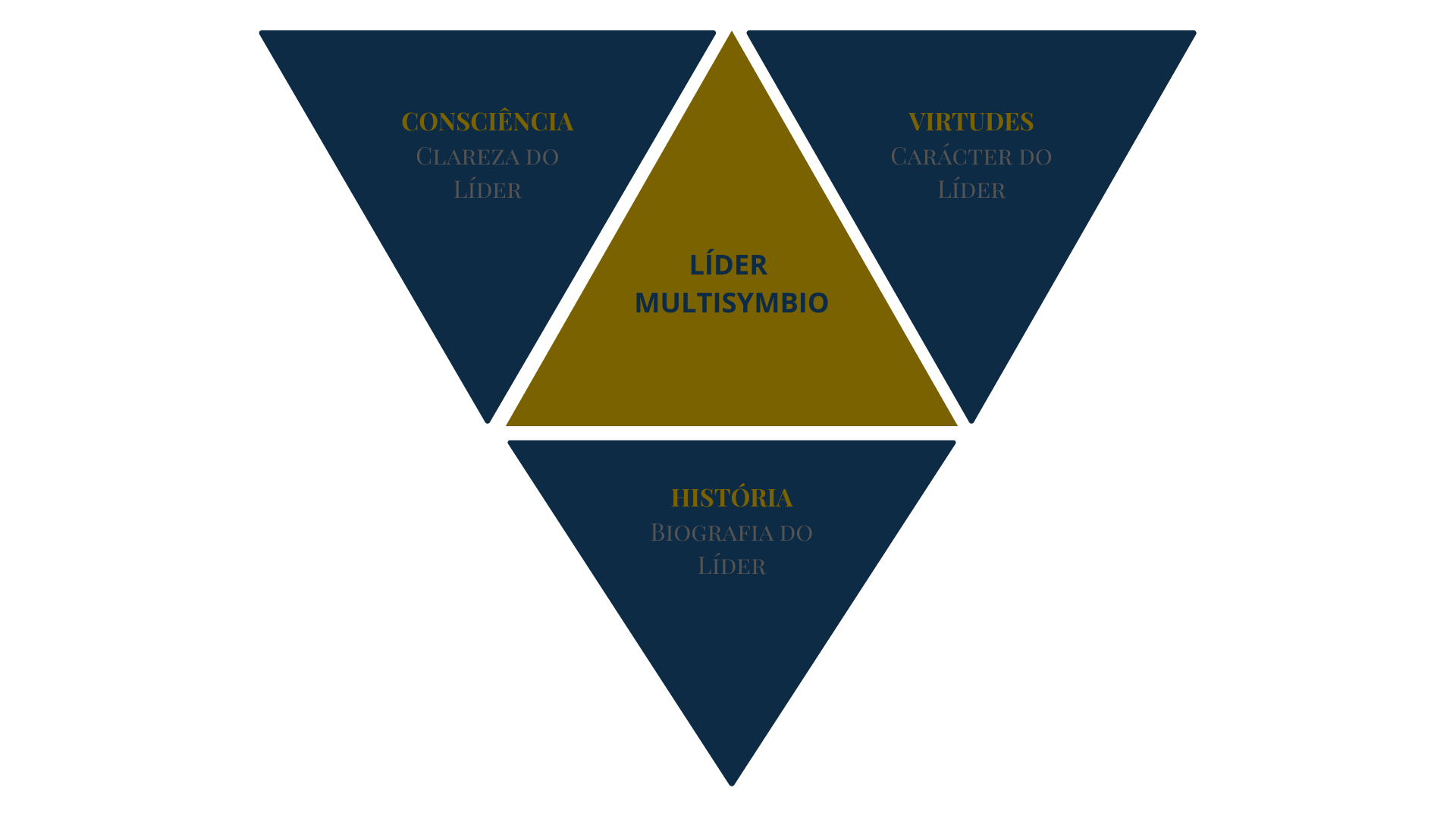 O Método Multisymbio® é representado por um triângulo que integra três dimensões essenciais da liderança humana: